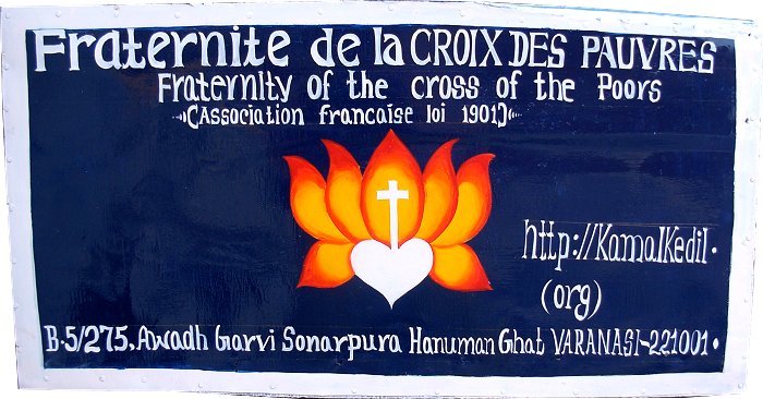 le panneau de la maison de la Fraternité de Bénarès en 2007. Ne vous fiez pas à l'adresse qui a changée !