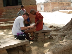 premiers soins devant le petit temple dominant la Gange. |